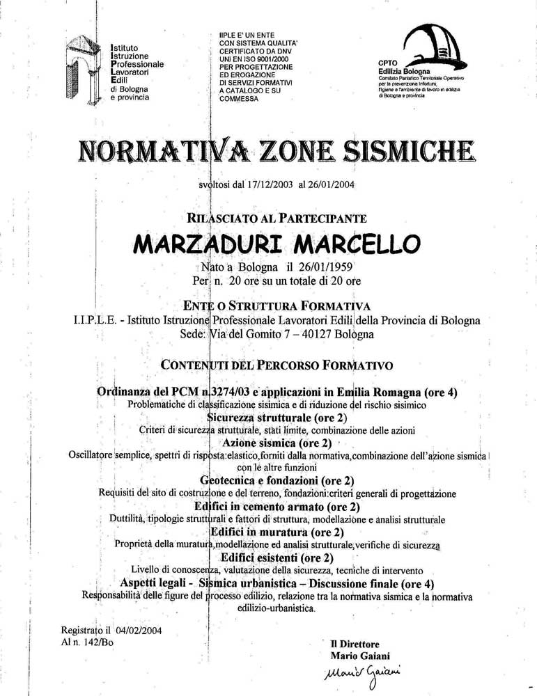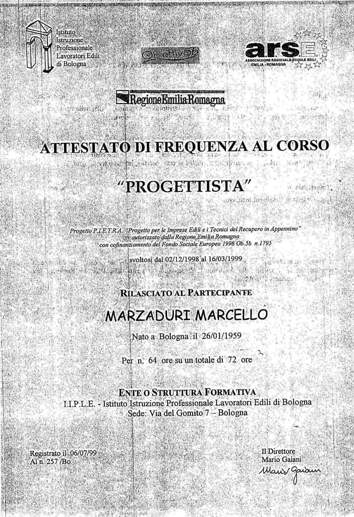 > Corso di aggiornamento professionale e specializzazione per “Progettisti e Tecnici del recupero edilizio degli edifici in pietra nell’Appennino”, presso L’I.P.L.E. di Bologna ed autorizzato dalla Regione Emilia-Romagna.