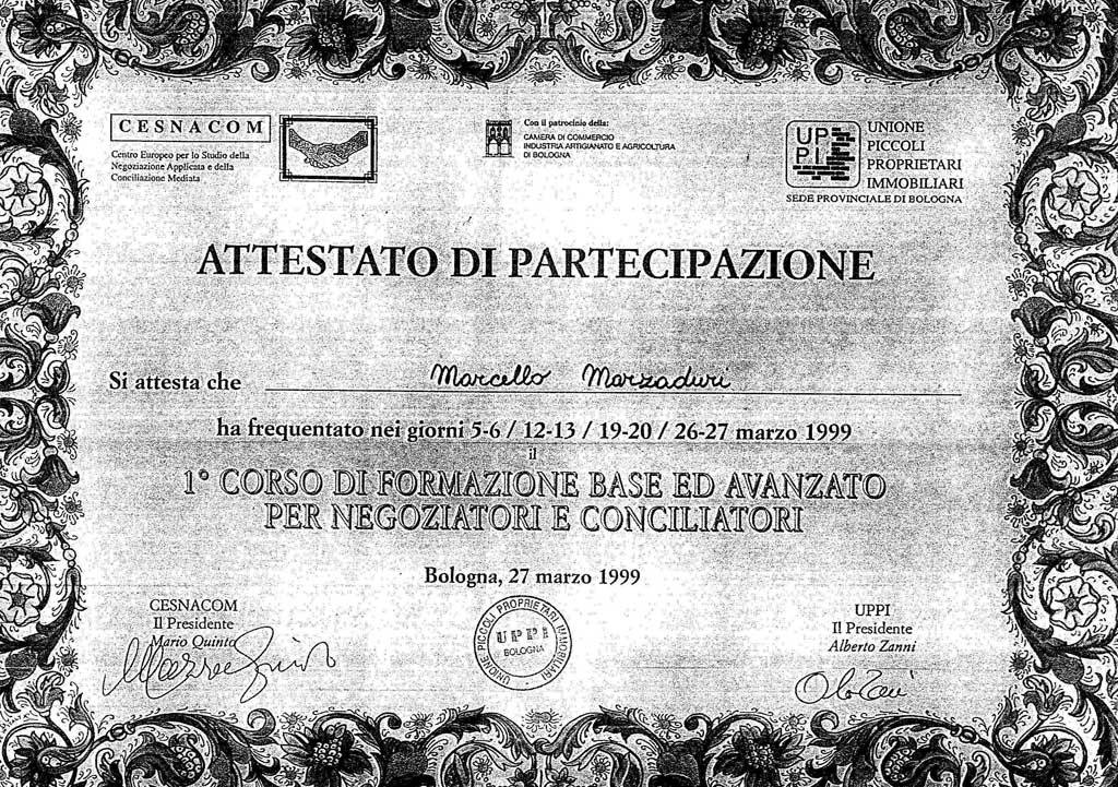 > Corso di formazione professionale per “Negoziatori e Conciliatori”, organizzato dall’U.P.P.I (Unione Piccoli Propreitari Immobiliari) e C.E.S.N.A.C.O.M., con il patrocinio della Camera di Commercio I. A.A. di Bologna.