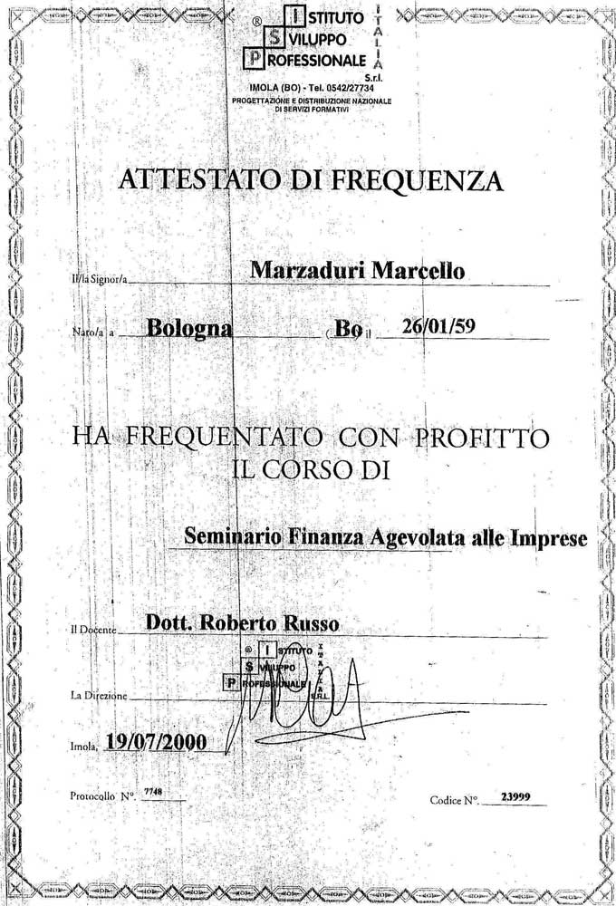 > Corso professionale per “Finanza agevolata alle imprese”, organizzato I.S.P. (Ist. Svilp.Prof.) di Imola.